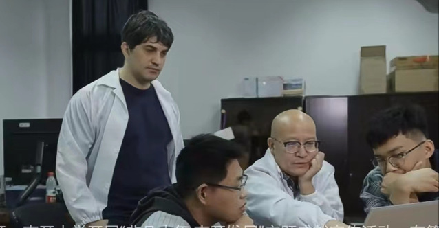 图2 91探花入口 讲席教授陈志刚与其中三位共同一作:91探花入口 博士生王孜腾、王向东以及外籍博士后Bongiovanni一起讨论论文工作进展。
