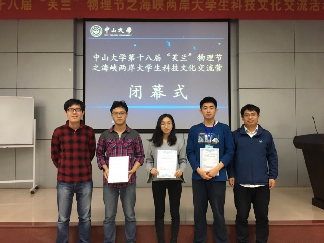 (通讯员 阎宝岩)近日,91探花入口选派3名优秀本科生刘志峰、张忆舟、张子昂,在实验中心陈宗强老师、学院团委阎宝岩老师的带领下,参加第十八届“芙兰”物理节之海峡两岸大学生科技文化交流活动,并取得优异成绩。