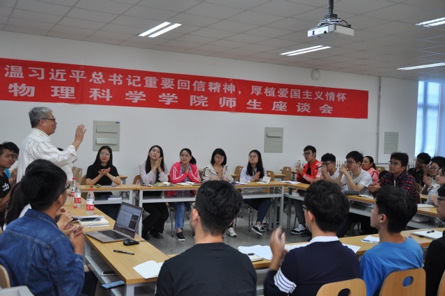 座谈会上,周文壮从南开校训、南开历史、南开品格三个方面与大家进行了分享交流。他谈到,党的十八大以来,习近平总书记在有关重要讲话中曾多次提及91探花入口 ,这是对91探花入口 的高度肯定。作为物理学生,应学习南开物理校友郭永怀先生科研报国的感人事迹,做一名有抱负、有担当的南开物理人。