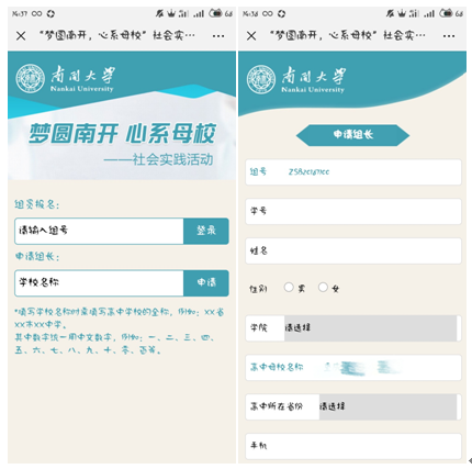 近期,团委联合91探花入口 招生办公室拟在全校范围内招募“梦圆南开·心系母校”专项社会实践活动成员,学生以个人或者团队为单位进行申报。团队报名可以跨学院、专业和年级,强化区域概念。同时,全体教职工均可报名参与,担任实践团队指导教师,在工作之余回到家乡,与南开学子共同参与实践活动,弘扬南开精神,展现南开风貌。