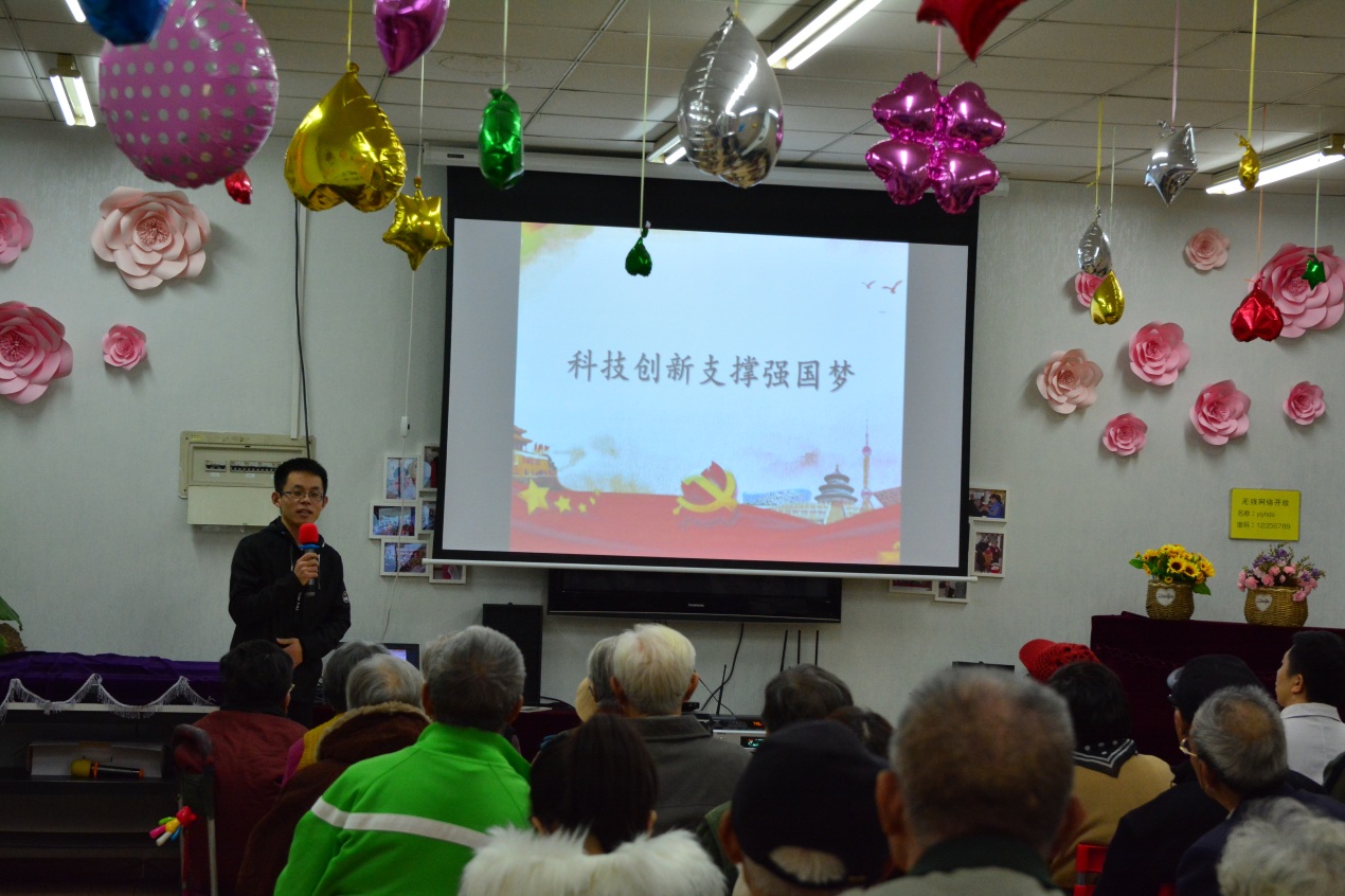 支部书记王艺驰说:“今年是改革开放四十周年,这是一个巧妙的时间将在坐的爷爷奶奶党员们跟我们年轻党员联系起来,四十年前爷爷奶奶们也就差不多我们这个年纪,站在时间轴两个端点的,四十年后的我们接过您们的接力棒,务实前行。”