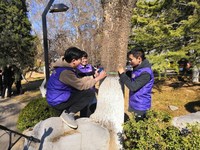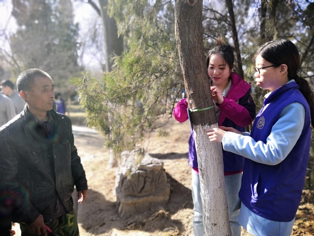 (通讯员 韩远欣)3月12日,植树节当天,物院学生代表与生命科学学院、后勤党委教师代表在学校内为树木挂上标识牌,绿化校园。