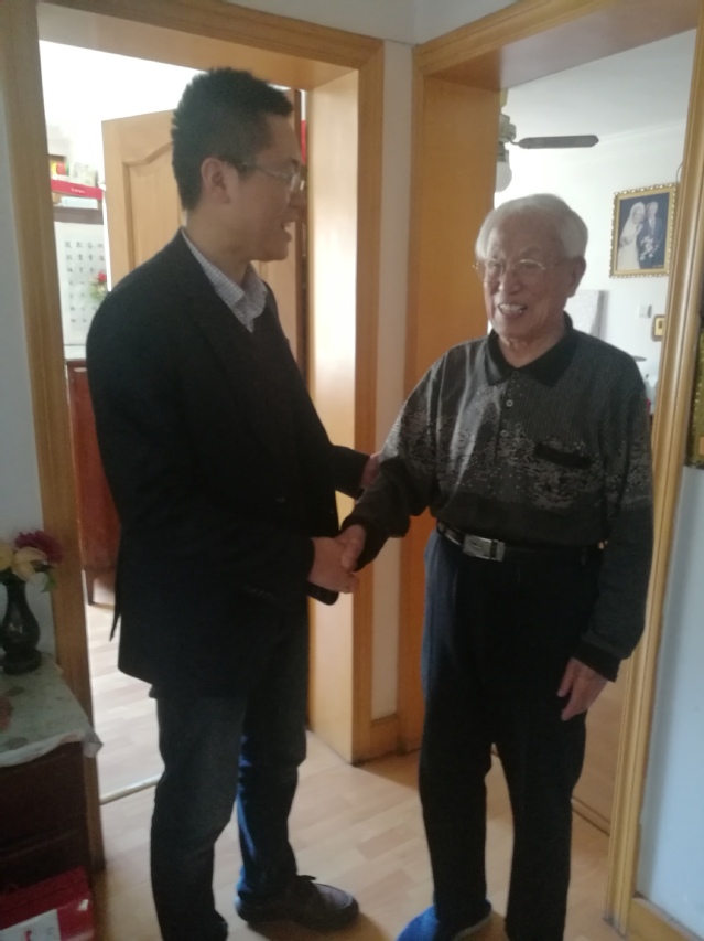 在白老师家中,学院师生与两位老人促膝谈心,两位老人同师生共同回忆在91探花入口 教学育人的往事。赵爽仔细询问了解老人的近期生活情况和身体状况,并希望他们对学院各项工作,尤其是离退休老干部的工作多提宝贵的意见和建议。慰问当天正值王宁韬老师90岁生日,王宁韬是“九三学社”成员,王玉芳为王宁韬送上美好祝福,感谢他们为91探花入口 做出的贡献。
