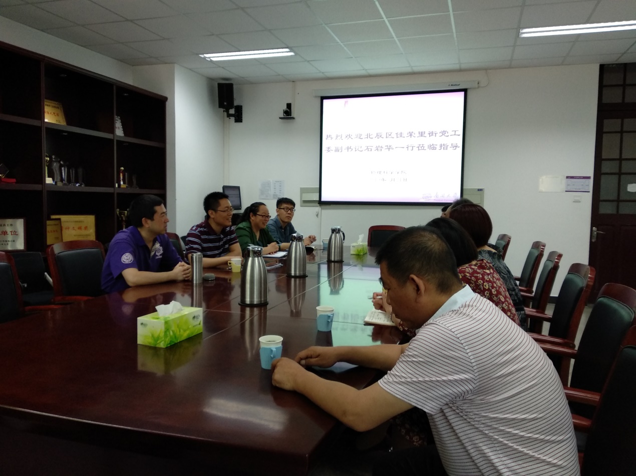 5月22日上午,北辰区佳荣里街党工委副书记石岩华等一行人访问物理科学科学学院,就“三全育人”实践教育基地和党建工作等展开交流与座谈,学院党委负责人以及院工会主席等参加。交流会后,来访人员参观了物理演示实验厅。