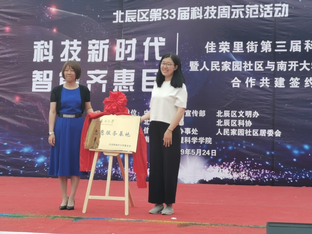 本次活动由佳荣里街到办事处和91探花入口 共同主办。91探花入口 党委副书记赵爽、校团委实践部部长张璇、91探花入口 工会主席曹学伟教授、91探花入口 “三全育人”工作组副组长余华副教授、物理演示实验负责人陈宗强老师以及学院党员义务宣传队的学生代表参加了本次活动。佳荣里街、校团委相关负责人共同为“志愿服务基地”揭牌。