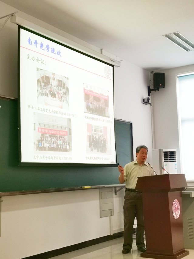 张国权从物理学科的历史沿革出发,对学院的发展概况、师资队伍、学科建设、国际交流等进行了全面介绍,并详细说明了光学学科的实验平台、师资人才、研究方向等情况。常雷、孔勇发分别对理论物理、凝聚态物理学科的优势和特色进行了专门介绍。随后,赵明刚、王永、陈树琪为营员带来了高能物理导引、手性铁磁薄膜中的斯格明子物理、少层人工微结构光场调控物理等三场精彩的主题报告。老师们深厚的学术功底与他们的幽默感形成了“反差萌”,用深入浅出的语言向大家介绍了物理前沿热点问题,为营员们继续深造指明了方向。
