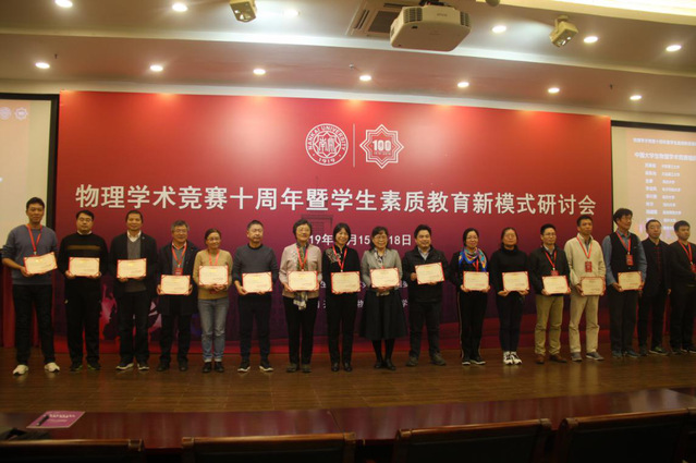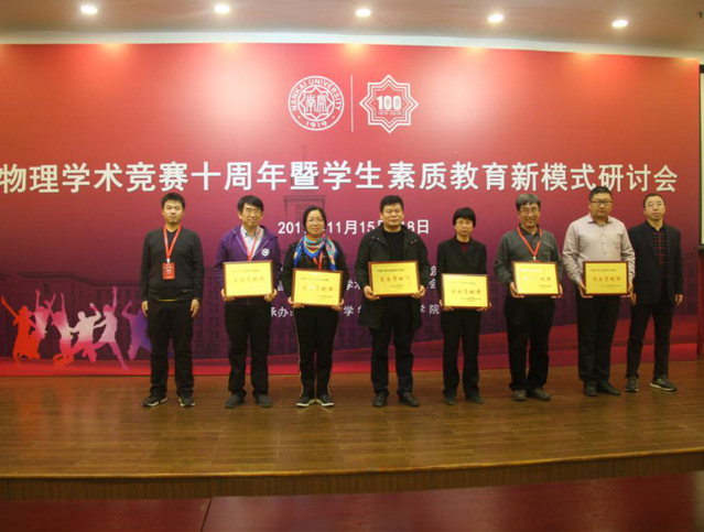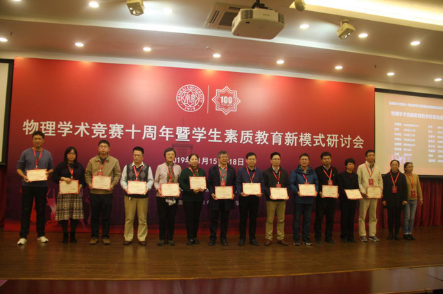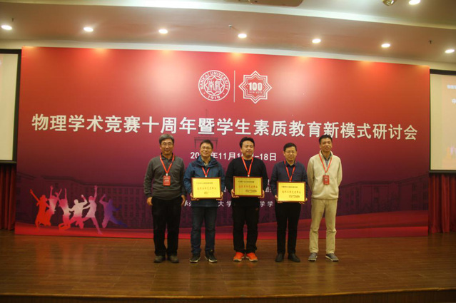 研讨会于11月17日下午在91探花入口 省身楼举行了闭幕式,中国物理学会物理教育委员会秘书长刘玉鑫教授作了题为“多措施并举,为培养优秀创新型人才而奋斗!”的大会报告,中国大学生物理学术竞赛组委会和中国高中生物理创新竞赛组委会为积极开展物理学术竞赛教学活动并在教育教学改革方面取得丰硕成果的单位级个人进行了表彰。分别授于63个单位及个人“物理学术竞赛突出贡献奖”、“中国大学生物理学术竞赛组织工作先进单位”、“中国大学生物理学术竞赛组织工作先进个人”、“中国高中生物理创新竞赛组织工作先进单位”、“物理学术竞赛教育教学改革先进单位”、“物理学术竞赛教育教学改革先进个人”并颁发证书。