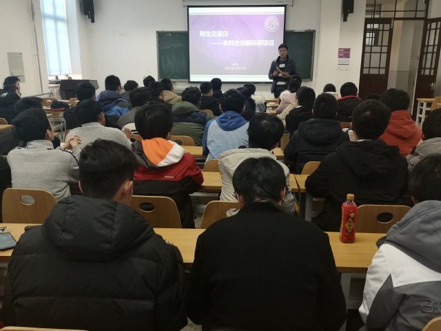 本次“师生交流日”邀请学院负责本科生科研创新工作的余华老师担任主讲。余华首先对百项、市创、国创进行了总体情况介绍,随后从科研项目书面材料制作、项目开展与答辩、经费申请与报销三个方面进行详细讲解,就科研创新项目实施过程中的重点与难点进行了强调。最后,学生们就课外科研创新活动遇到的问题与余华进行交流。