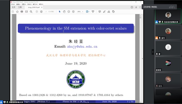 为促进学科进一步交叉融合发展,学术交流内容不仅涉及核物理、粒子物理、强子物理等传统理论物理研究方向,还包括气溶胶、人工智能、机器学习等热点、新兴领域。在此基础上,现代物理系还与北京大学高能物理中心联合举办了关于CP破坏实验理论解读的学术报告。截至目前,现代物理系已举办15场线上学术报告,参与听众近1000人次。线上交流气氛活跃、学术气息浓厚,取得了令人满意的效果。