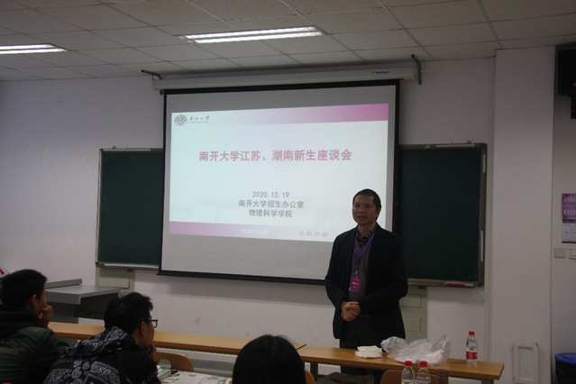参会老师认真听取同学们对江苏和湖南招生宣传工作提出的意见和建议,感谢同学们能够积极参与学校的招生宣传工作,对两省学子入校以来的表现给予了充分肯定,勉励大家尽快完成高中生和大学生的角色转换,适应大学生活,努力学习、全面发展,并将一直关注同学们进校后的学习和生活,希望他们能够根据自己的亲身经历向母校的同学们介绍南开、宣传南开。