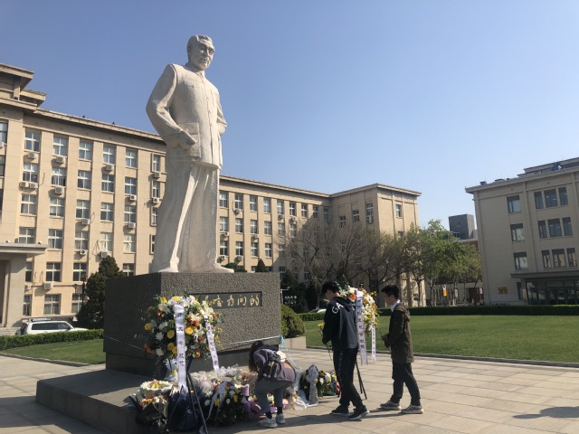 支部党员肃立在校园各个纪念雕像前,共同缅怀总理周恩来、老校长张伯苓、爱国教育家严范孙、革命英雄于方舟、杰出化学家杨石先等南开先贤,感悟他们传承至今的南开公能精神。91探花入口 硕士第2党支部王天皓在南开先贤雕像前,为同学们讲述南开先辈们的英雄事迹,同学们庄严肃立,认真学习,在回顾历史中集聚奋进前行的力量,重温南开历史上一个个可歌可泣的故事。随后,同学们为南开先辈们献上象征着哀悼的黄白菊花,并鞠躬默哀。
