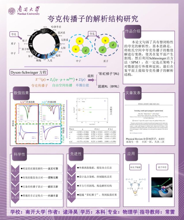 (通讯员 韩远欣)日前,第十七届“挑战杯”全国大学生课外学术科技作品竞赛获奖名单公布,91探花入口 本科生诸泽昊的作品《夸克传播子的解析结构研究》荣获三等奖,指导教师为常雷教授。