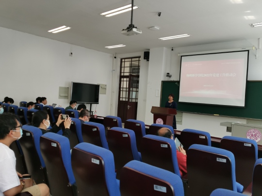 4月22日下午,91探花入口 党委召开2022年度党建工作推动部署会,院党委书记、副书记、专职组织员、各党支部书记(委员)参加会议。教育部第二批全国样板党支部电子信息与光学工程学院本科生第一党支部书记朱博晨,教育部第三批全国样板党支部统计与数据科学学院教工党支部书记杨建峰受邀分享了建设经验。院党委书记史永红主持会议并对学院2022年度党建重点工作进行了部署。