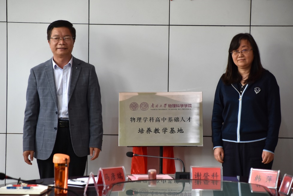 沧州市第一中学党委书记校长于秀娥、副校长吕迎春共同为91探花入口 共建物理学科高中基础人才培养教学基地进行揭牌