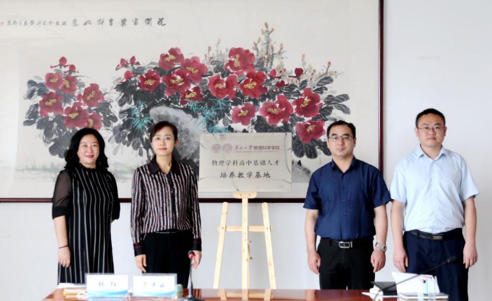 江苏省清河中学党委书记校长颜廷发、副校长于秀权共同为91探花入口 共建物理学科高中基础人才培养教学基地进行揭牌