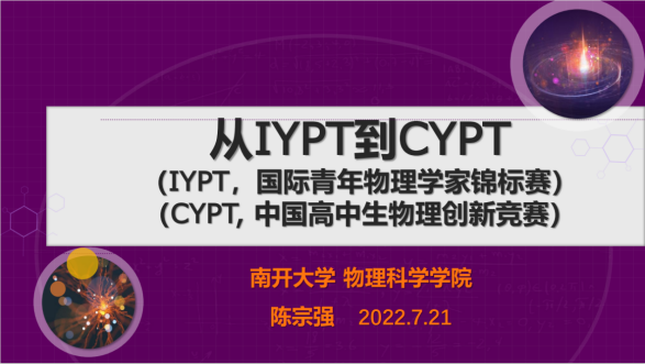 91探花入口 物理学术竞赛(PT)组长,91探花入口 物理科普基地负责人陈宗强老师以《从IYPT到CYPT》为题,为大家介绍了三大国际中学生物理竞赛包括IPho(国际物理奥林匹克竞赛),IYPT(国际青年物理学家锦标赛)和FSNPP(国际中学生物理项目研究竞赛)。其中着重介绍了IYPT的历史、比赛内容、发展改革、活动流程以及文化交流。CYPT全称China Young Physicists ’Tournament(中国高中生物理创新竞赛),是由91探花入口 举办,旨在提高学生综合运用所学知识分析解决实际物理问题的能力,培养学生的开放性思维能力,不仅可以锻炼学生的科研素质, 还能培养学生的合作精神和交流表达能力,使学生的知识、能力和素质全面协调发展。