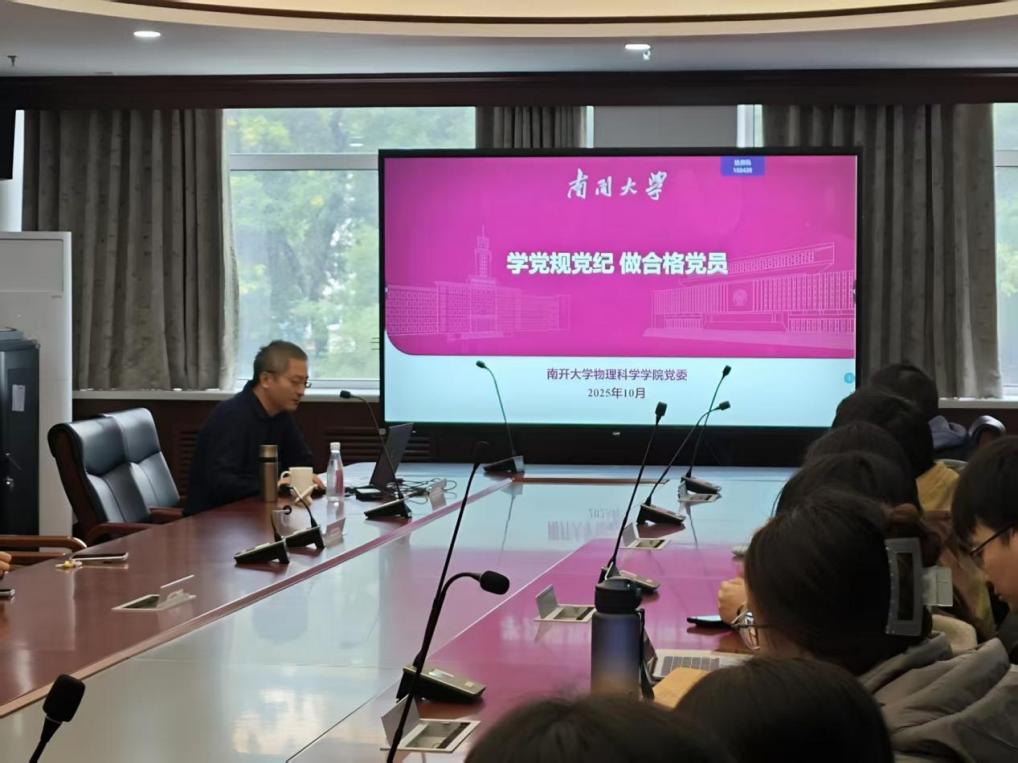 唐柏权以“学党规党纪,做合格党员”为主题进行党课。他带领同学们系统学习了新修订《条例》的重要内容,引导同学们要全面贯彻党的二十大精神,牢记党的宗旨,加强底线意识,做到将《条例》要求内化于心,外化于行。随后,他结合具体案例,引导同学们学纪、知纪、明纪、守纪,提升大家对党纪的“敬畏感”,帮助大家进一步增强纪律意识、规矩意识,筑牢思想防线,把学习成果转化为日常习惯和自觉遵循。