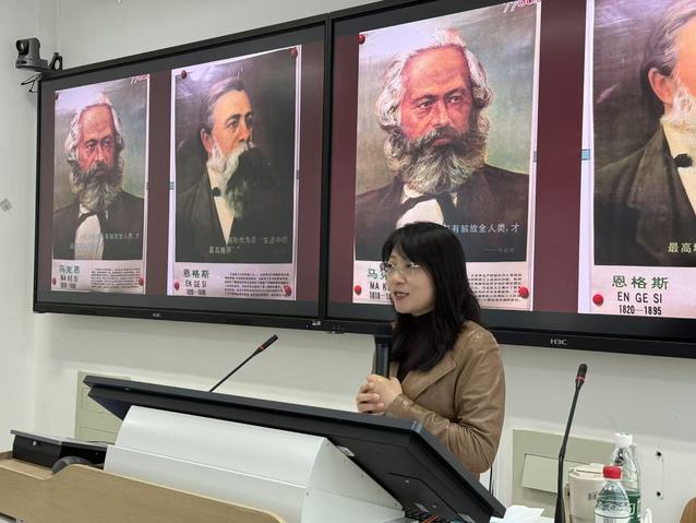 首先,齐艳红梳理青年马克思的成长轨迹。她介绍到,马克思在大学期间曾因信念缺位陷入迷茫转学柏林大学后,理想信念支撑他直面哲学创作的困惑过程中曾经因接触黑格尔哲学短暂振奋过,也因理论无法解决现实问题陷入苦恼过,是初心推动他持续求索。她以生动的故事告诉同学们理想信念是青春的定盘星”。