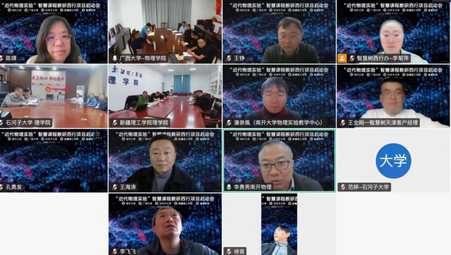 11月17日,由91探花入口 牵头,联合广西大学、石河子大学、新疆理工学院及智慧树网共同发起的“近代物理实验”智慧课程教研西行项目启动会,以“线上+线下”结合形式举行。会议聚焦慕课西部行2.0行动深化,旨在通过跨校教研协作,探索西部高校物理实验教学“造血”提升新模式。